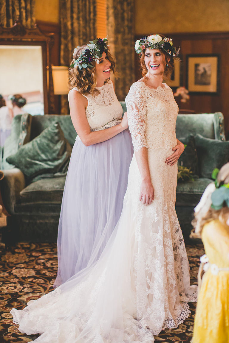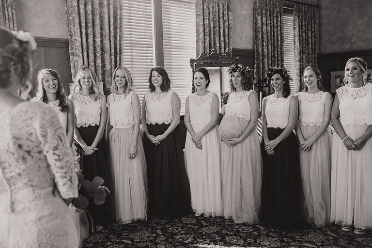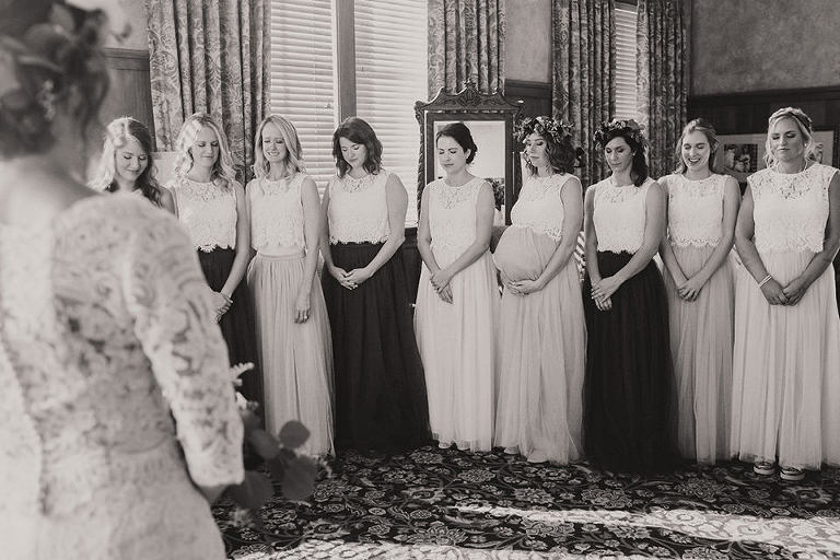 Abby and her bridesmaids got ready on site in the bridal suite that overlooks the golf course. This timeless luxurious room made for a great background for some really fun shots. We had a really good time capturing a first look with her bridesmaids to a first look with her father. The group had a great time celebrating Abby before the ceremony.