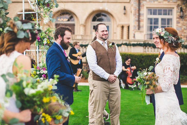 The Ceremony was held on the back lawn of TPC. The aisle was adorned with lush natural florals. The faith-filled sermon perfectly embodied the couple. Abby and Tom were beaming with pure happiness and joy the entire ceremony.