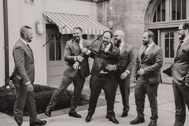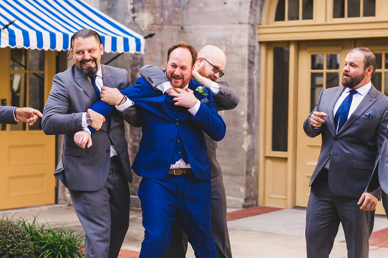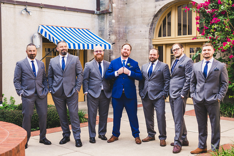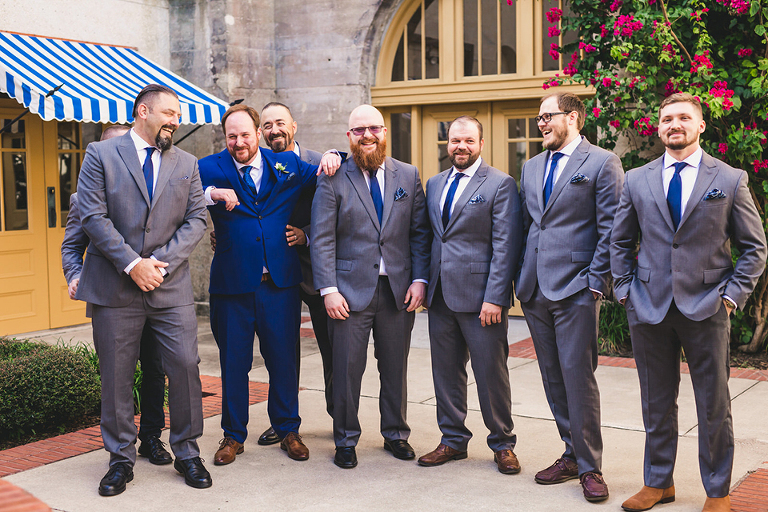 After the first look, we headed to downtown St. Augustine for some fun couples and wedding party portraits. The iconic Palm Row was the perfect place for some quick couples portraits. We then met up with the wedding party at the Lightner Museum for some fun wedding party portraits.