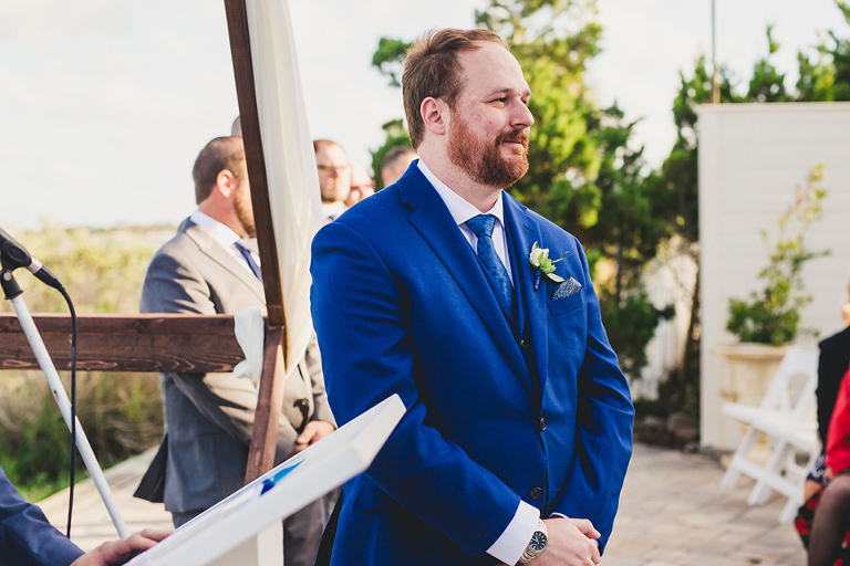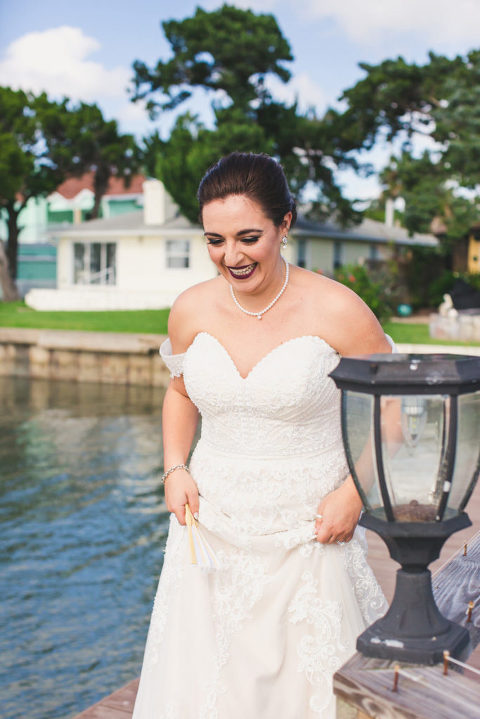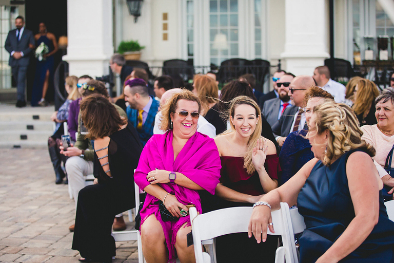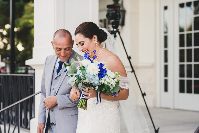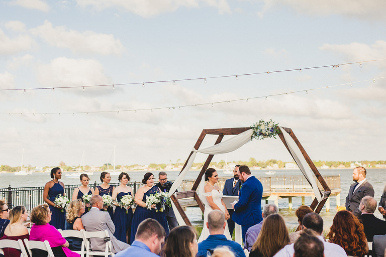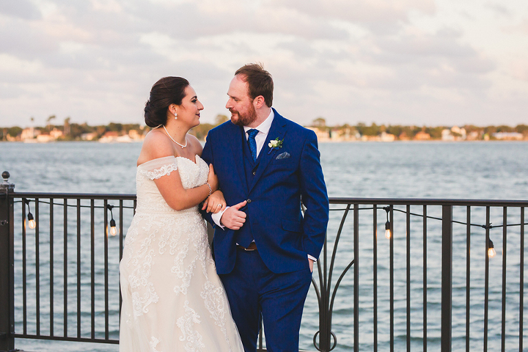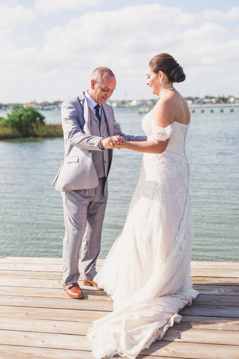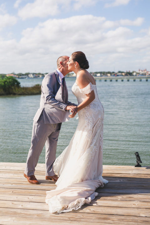 We did the first look on the dock of the house that overlooks the beautiful historic St. Augustine skyline. I mean…with a view like that, how could ya not?! You could feel the suspense and anticipation as John waited for Alessandra to tap him on the shoulder. When she did, it was an emotional private moment between the two, as they saw each other for the first time that day as husband and wife.