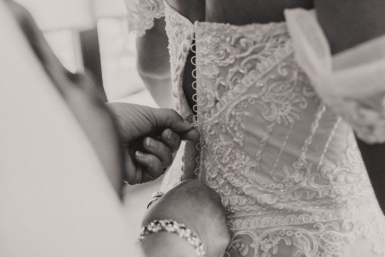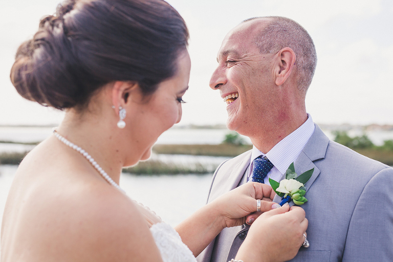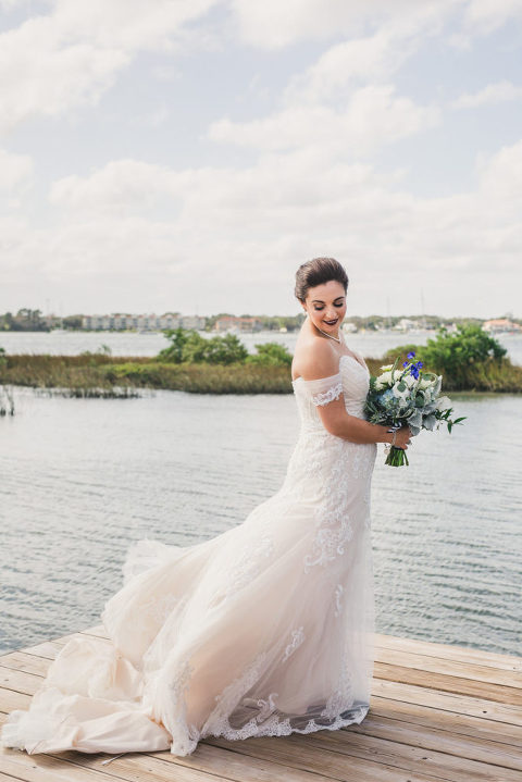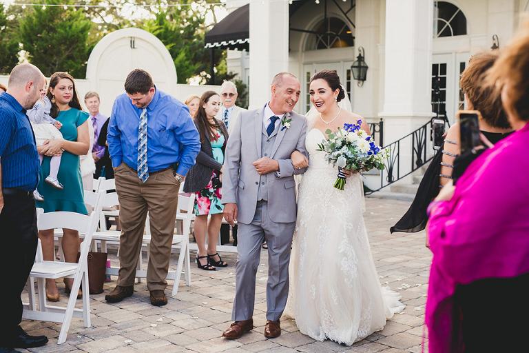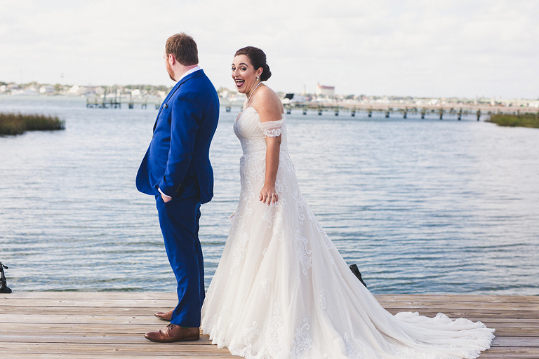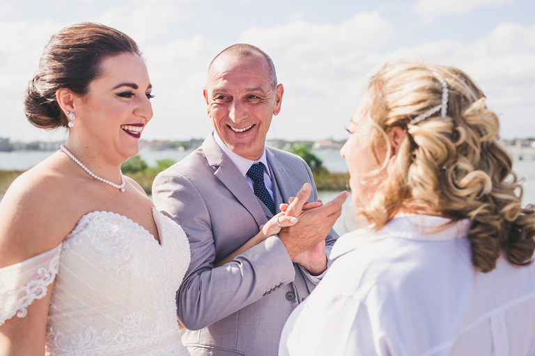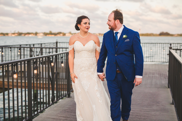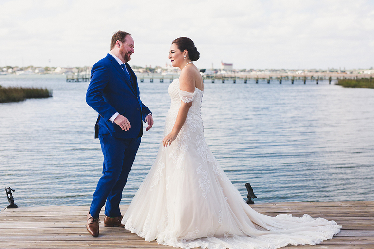 We did the first look on the dock of the house that overlooks the beautiful historic St. Augustine skyline. I mean…with a view like that, how could ya not?! You could feel the suspense and anticipation as John waited for Alessandra to tap him on the shoulder. When she did, it was an emotional private moment between the two, as they saw each other for the first time that day as husband and wife.