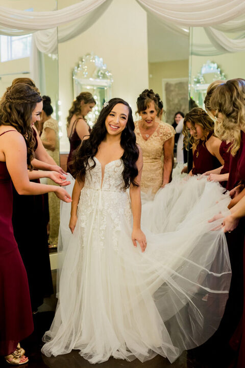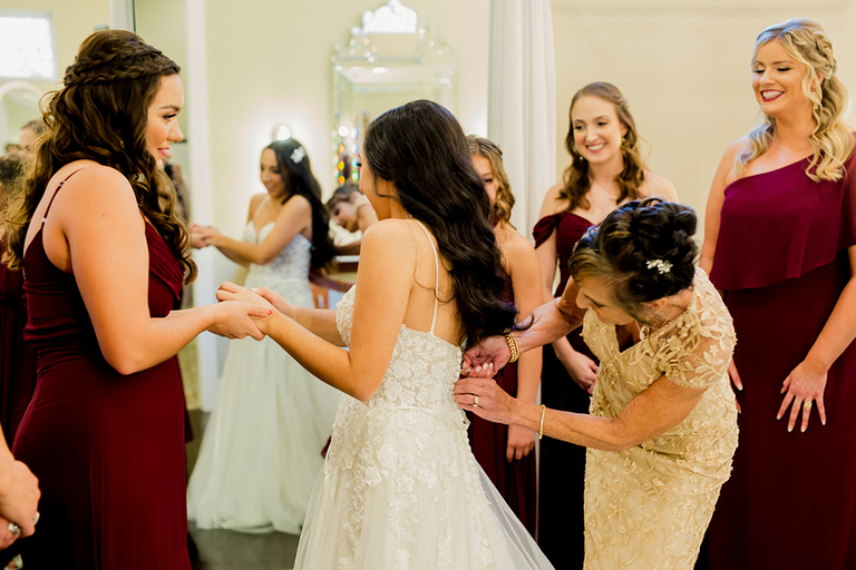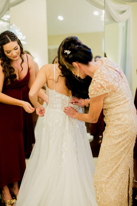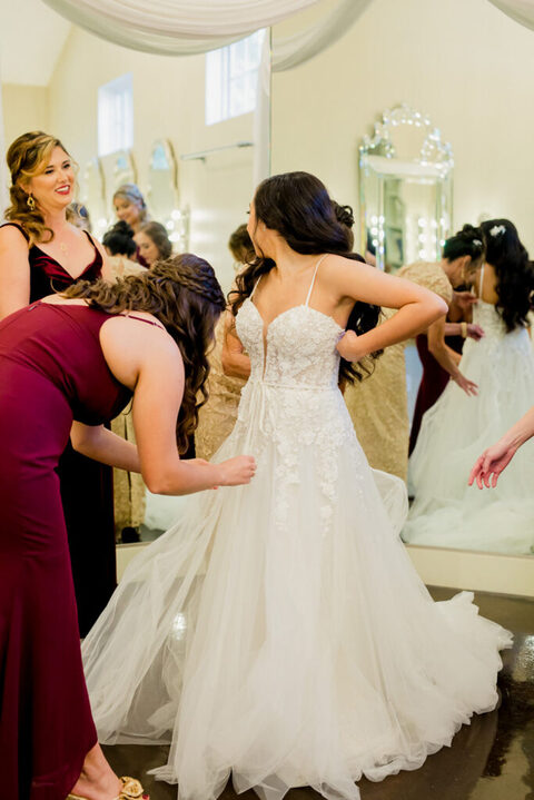 Look at all the winter floral colors in these details! Absolutely beautiful! Jen was beaming from ear to ear as she got ready to get into her dress. Everyone had a great time celebrating Jen before her first look with Cole.