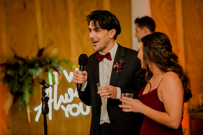 This is a wedding reception of dreams come true. This beautifully decorated space was the perfect backdrop to celebrate the newlyweds. We heard some great speeches, ate delicious food, and then got this party started!