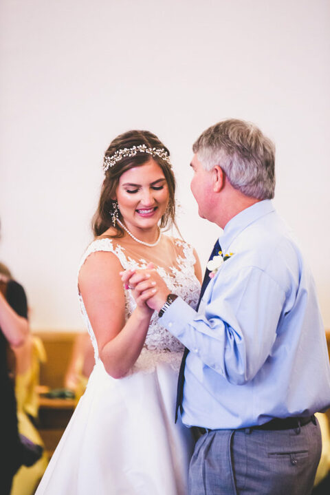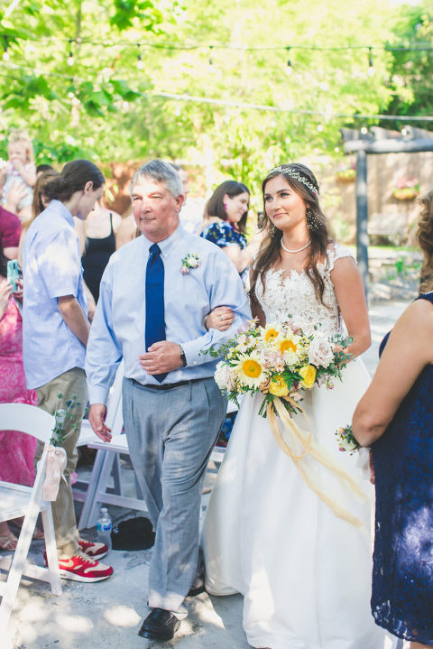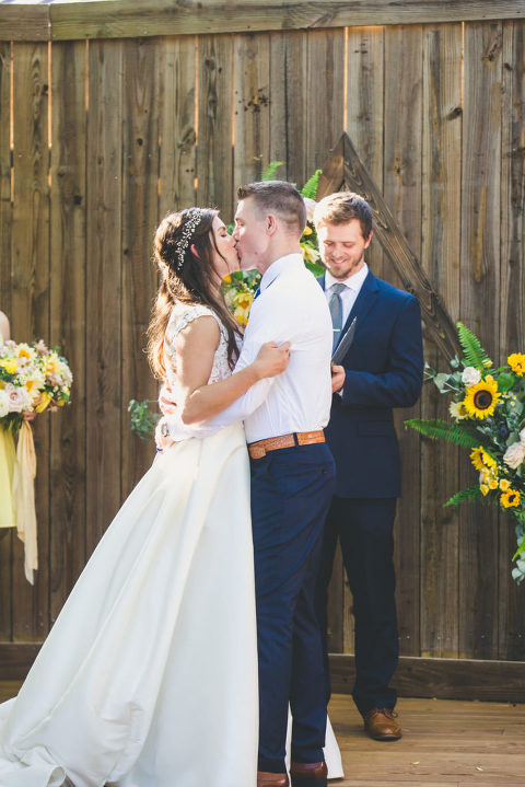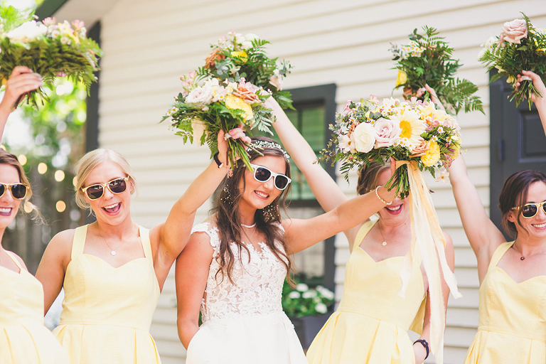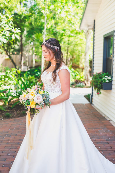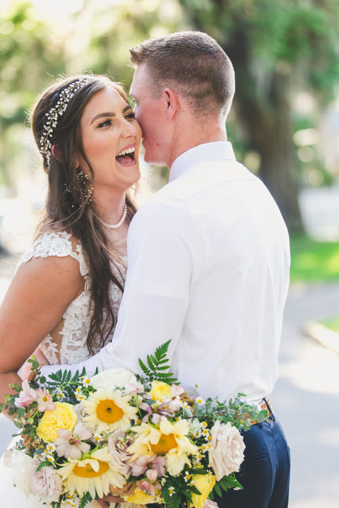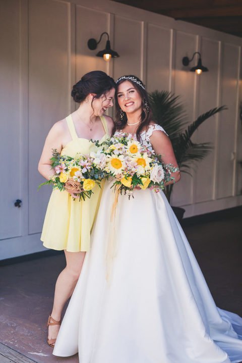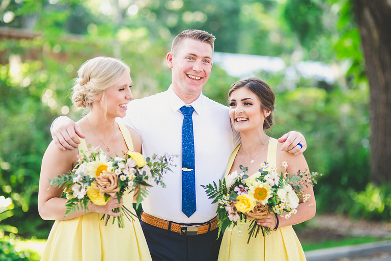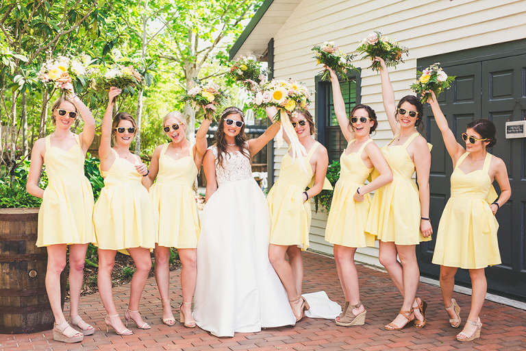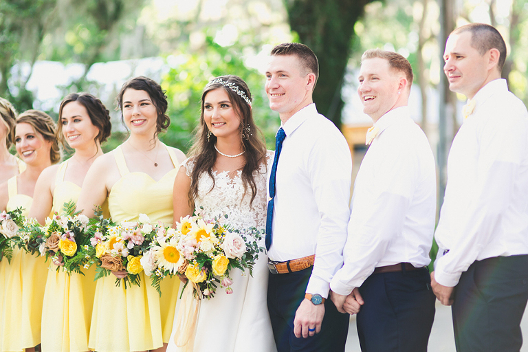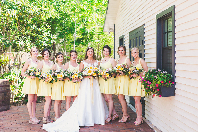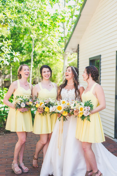 Becca and her bridesmaids got ready in the bridal suite at the Carriage House in St. Augustine. The girls were having so much fun celebrating Becca before she walked down the aisle. We did a fun champagne pop and a sweet first look with her father. The sunflower boquets and vibrant yellow dresses matched the cute and fun vibe of Becca and her bridesmaids.