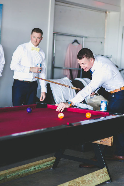 Nate and his groomsmen got ready in a fun and trendy Air Bnb in downtown St. Augustine. The guys were able to chill and hang out before heading over the Carriage House Wedding Venue. They drank, played pool and celebrated Nate before heading out.