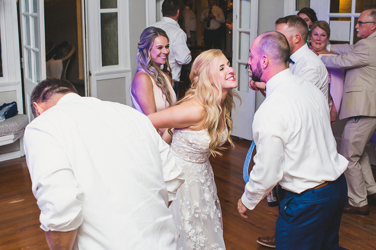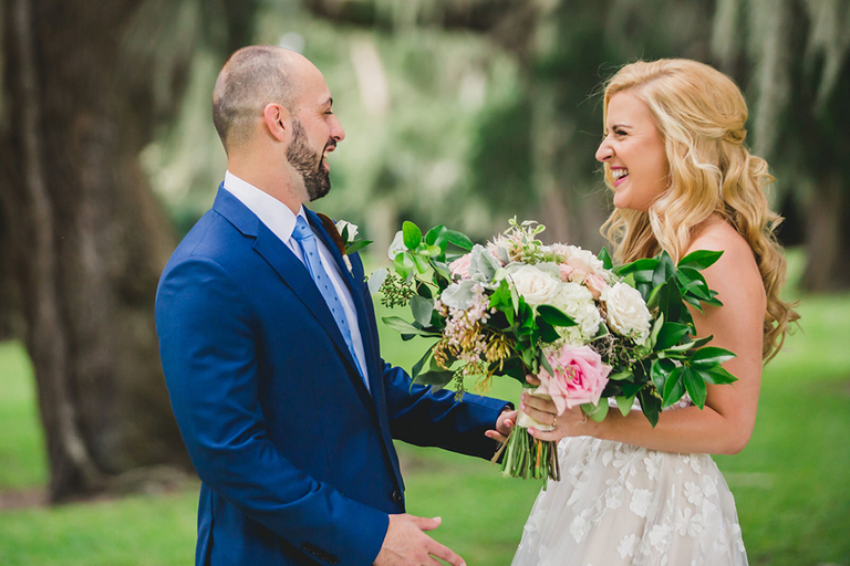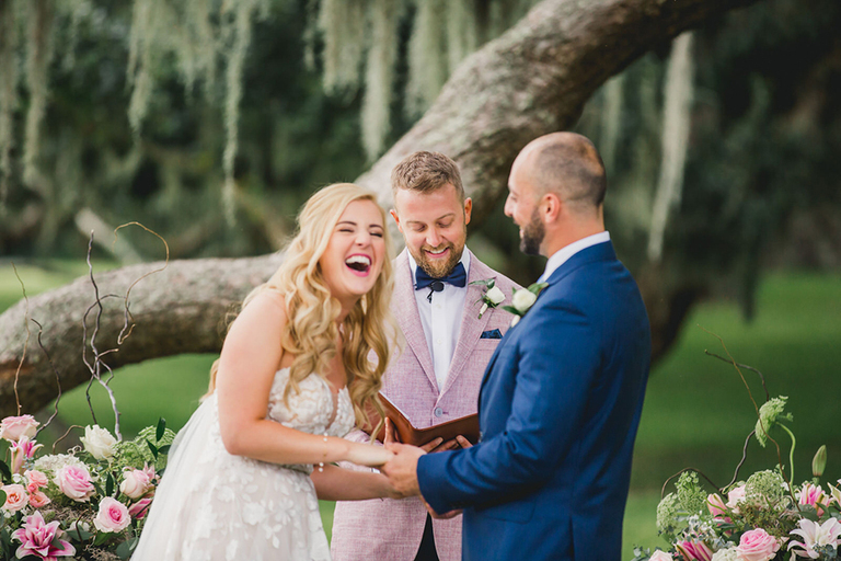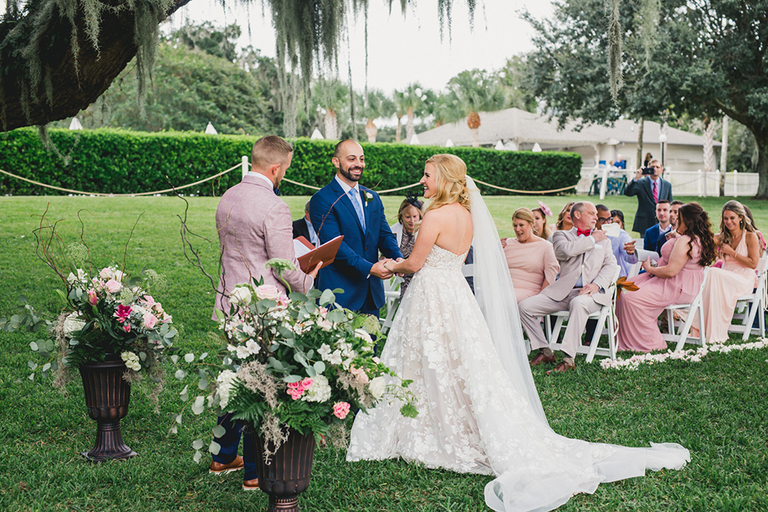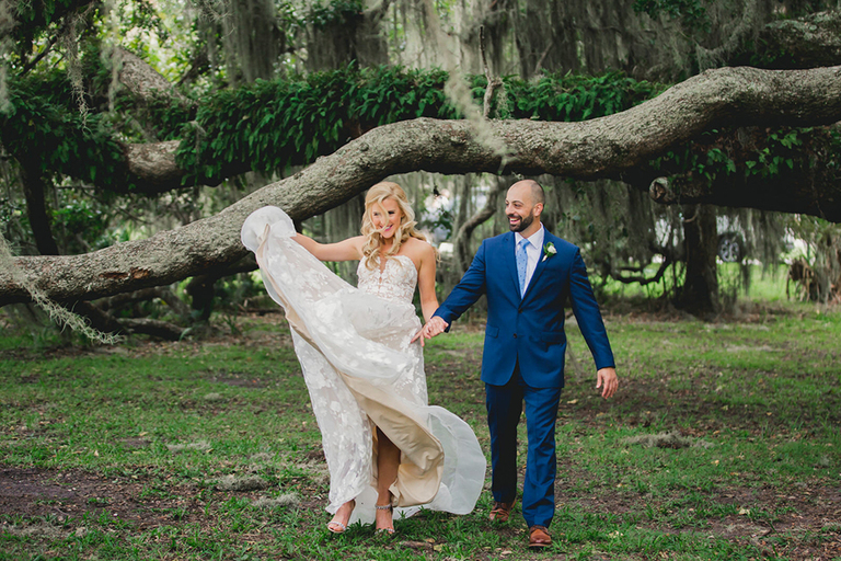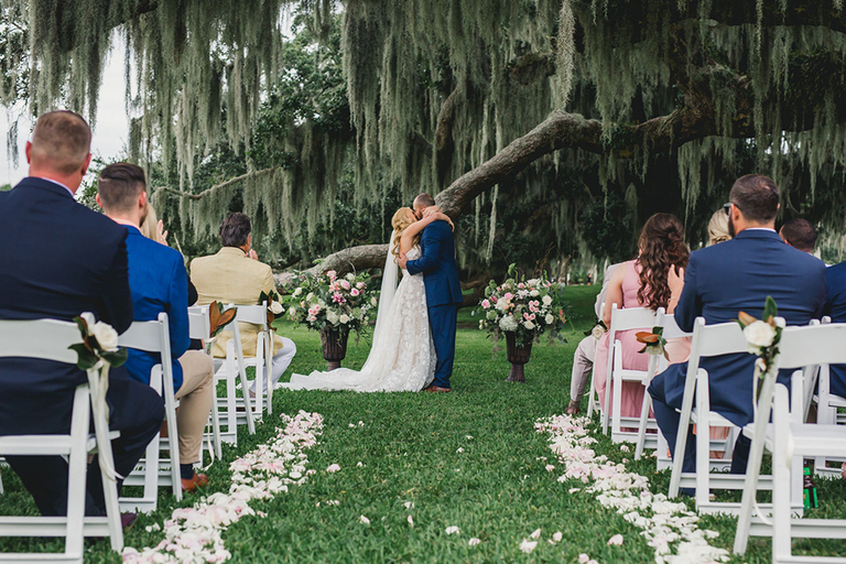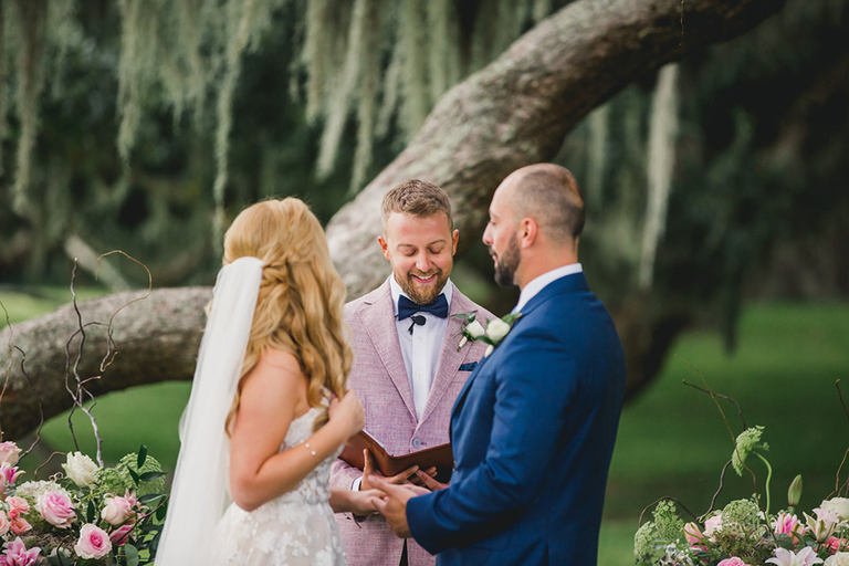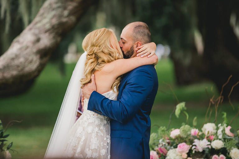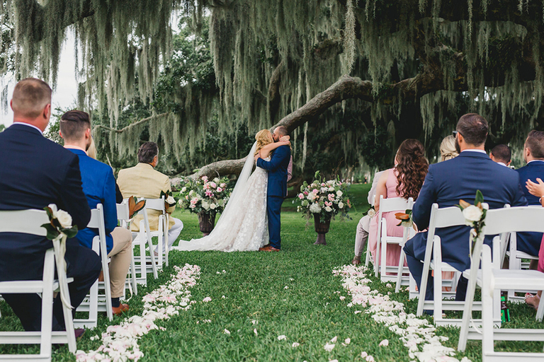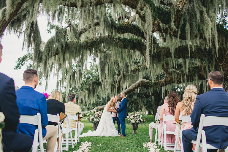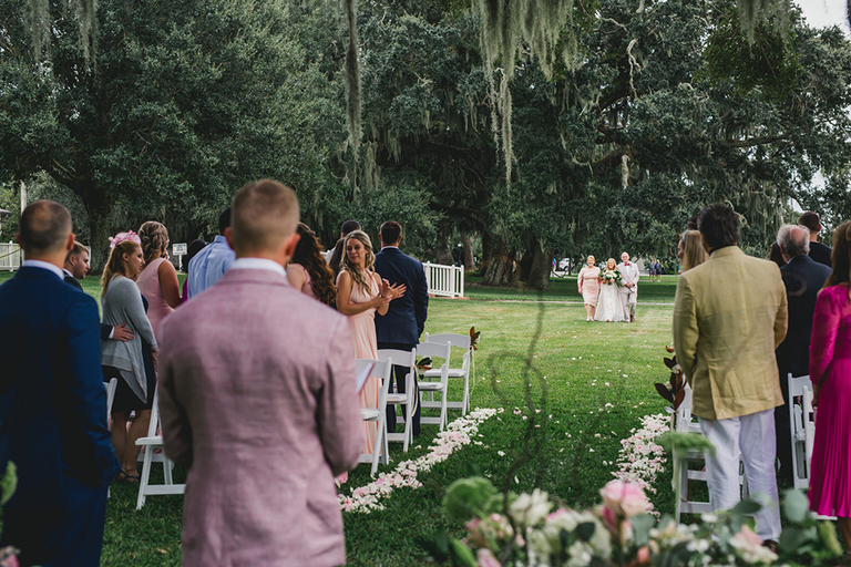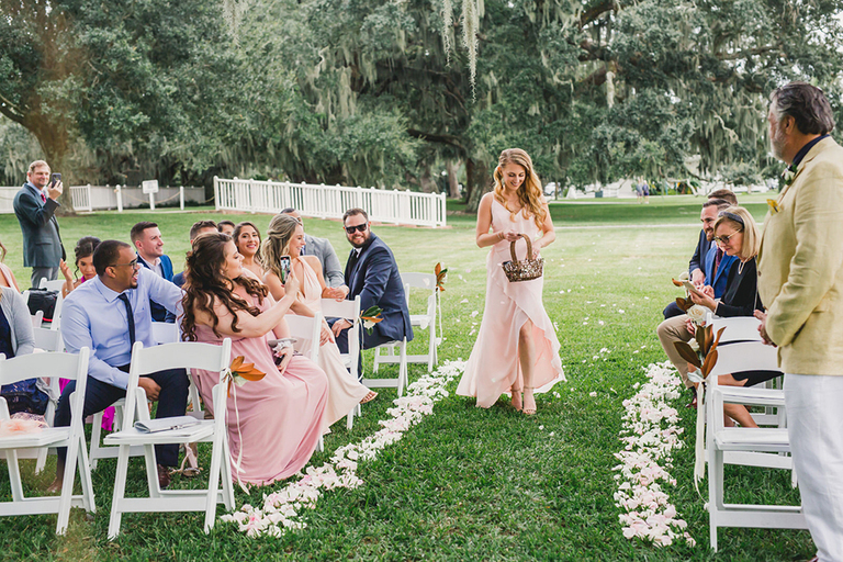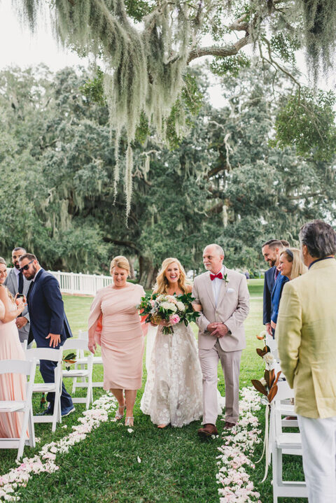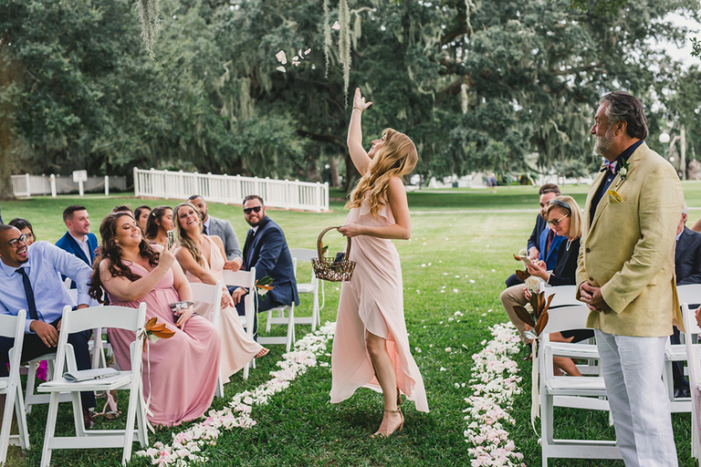 Watch that flower girl SLAY! Amazing! The ceremony was held under beautiful oak trees covered in Spanish moss. Surrounded by their closest family and friends, Amy & Nick exchanged vows and rings and sealed it with a kiss!