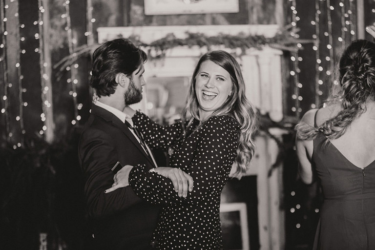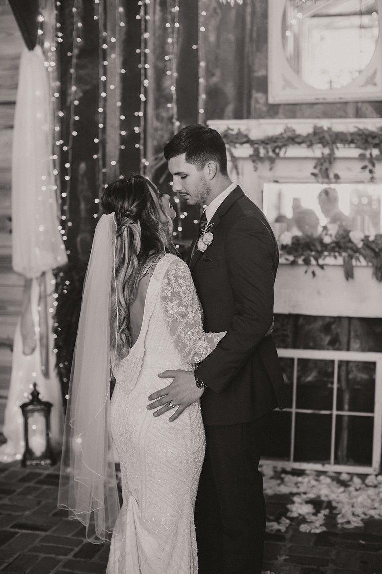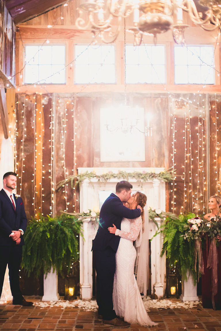 The ceremony was held inside the barn due to the rain. The twinkle lights that were up in the barn made for a super romantic vibe on this rainy day. Mikaela & David’s intimate ceremony was truly beautiful, it kinda felt like a movie set to be honest, lol. A rainy day winter wedding with twinkle lights…so good!