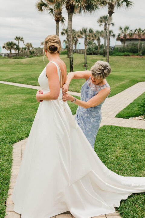 Claire and her bridesmaids got ready at a beach front suite. We were playing “chicken” with the rain rolling through that morning, but it didn’t stop us from getting some beautiful images. The girls had a great time getting ready with the soon to be Mrs. Leeker.