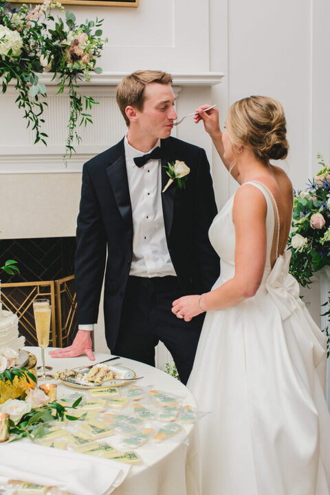 This reception was so much fun! Decor included an awesome Swan Ice Sculpture, a Signature cocktail inspired by their pup, and delicious cake! Guests enjoyed the evening dancing the night away. Congrats Mr. & Mrs. Leeker! We wish you lots of love and happiness!