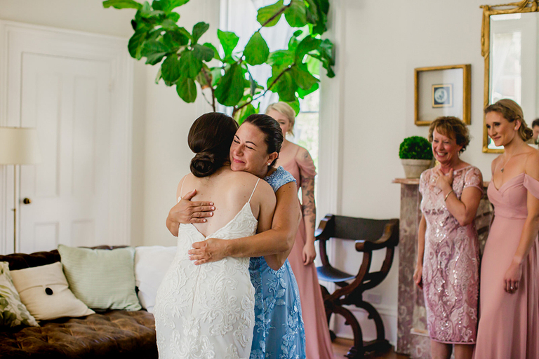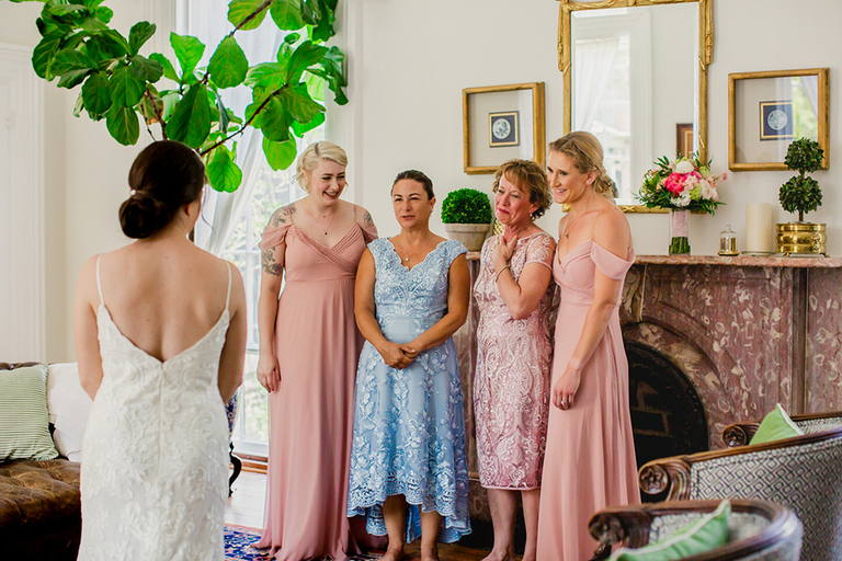 The bride was absolutely glowing as she got into her wedding dress. We did an emotional first look with her family. Everyone was so ecstatic to get this day going and start celebrating!