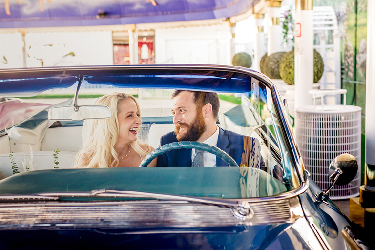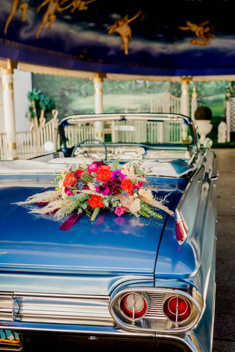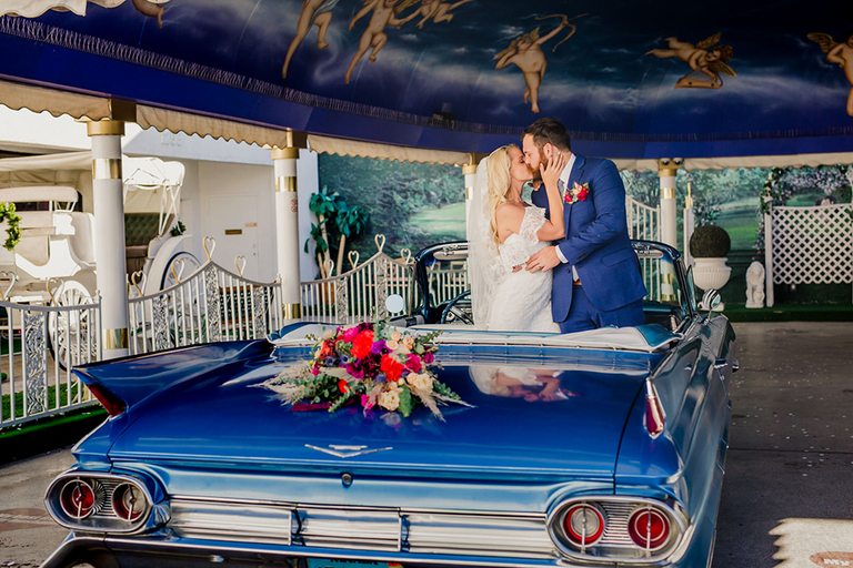 THE LITTLE WHITE CHAPEL! In an AH-MAZING Classic Blue 1961 Cadillac Convertible…C’MON! Wow! SO, they did it. It was amazing. Glorious and picture-perfect.