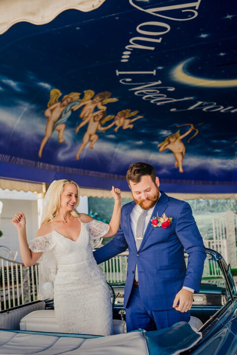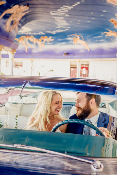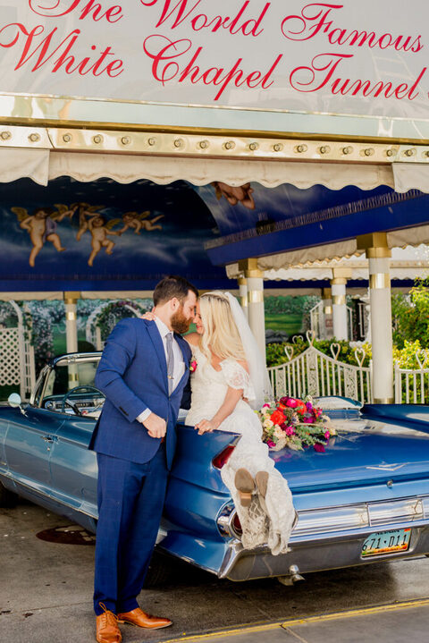 On our way back I asked them to stop by this hotel to see if we could get some cool shots in the driveway. We did, and it’s SO VEGAS. After 5 minutes a security guard told us we had to leave and we can’t “block traffic” to take a photo, well there was no traffic and we weren’t blocking anything, so I said “ok sir, yes sir” and then he went back inside and I took more pictures and then he came back out and we ran and jumped in the car, because I was going to get them arrested on their wedding day if I didn’t stop.
