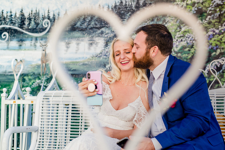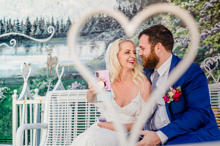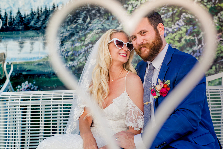 Mike and Alien Jamie exchanged vows privately overlooking the mountains at sunset. We took some awesome photos and popped some champagne. We watched the sunset and froze our butts off and it was amazing.