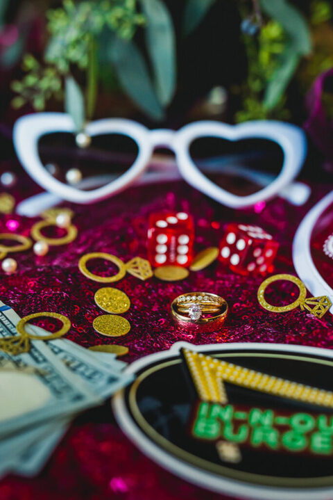 Ok so, we wanted to go all-out Vegas for her “flat lay”. That’s what it’s called when photographer’s put all your details together for your wedding day and take pictures.