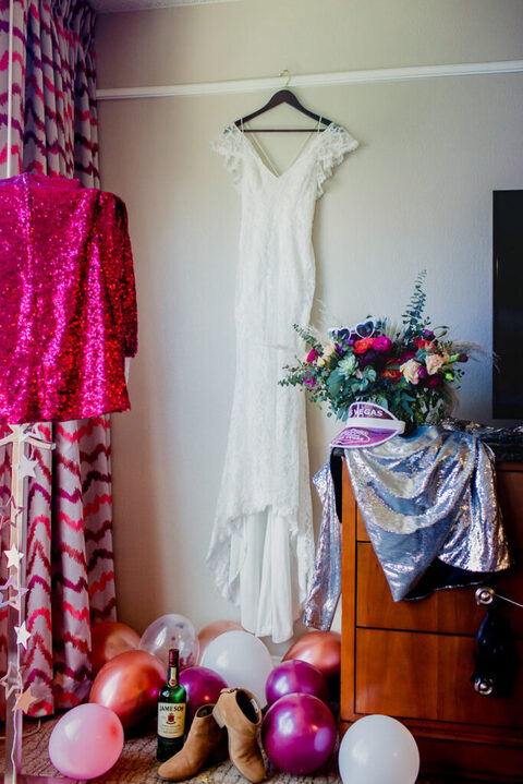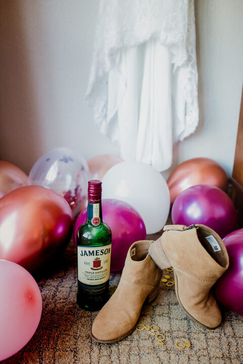 So here’s what I did: Money (for Jamie Money) In & Out Burger, Flowers Dice, and Sequins. I also threw balloons and glitter and her wedding dress because I knew I could do whatever I wanted and be creative AF. It was like amazing.