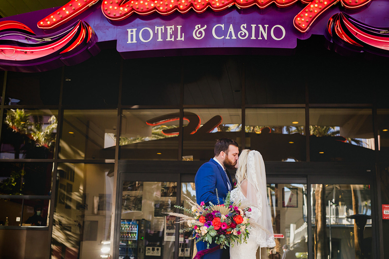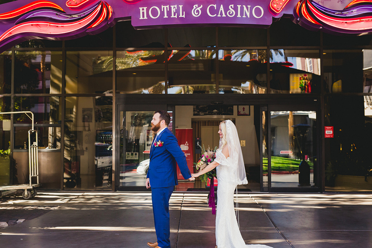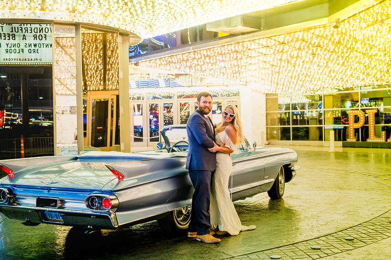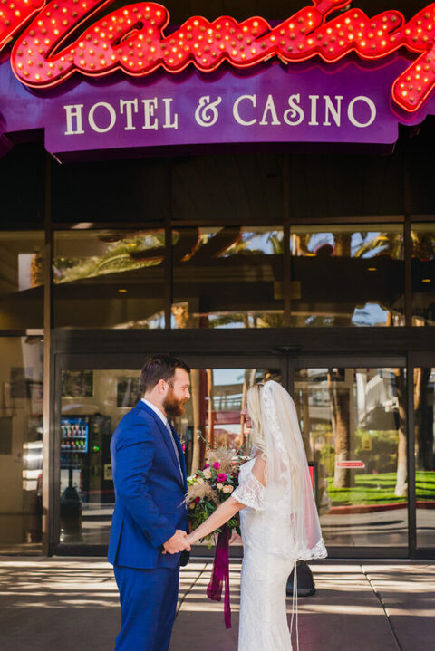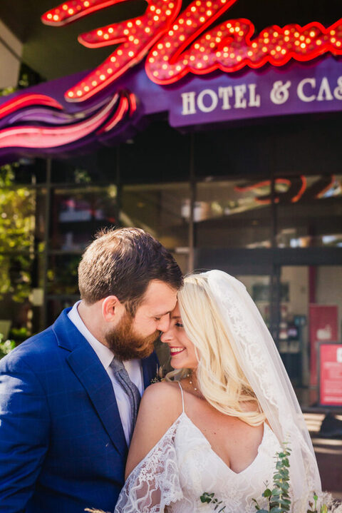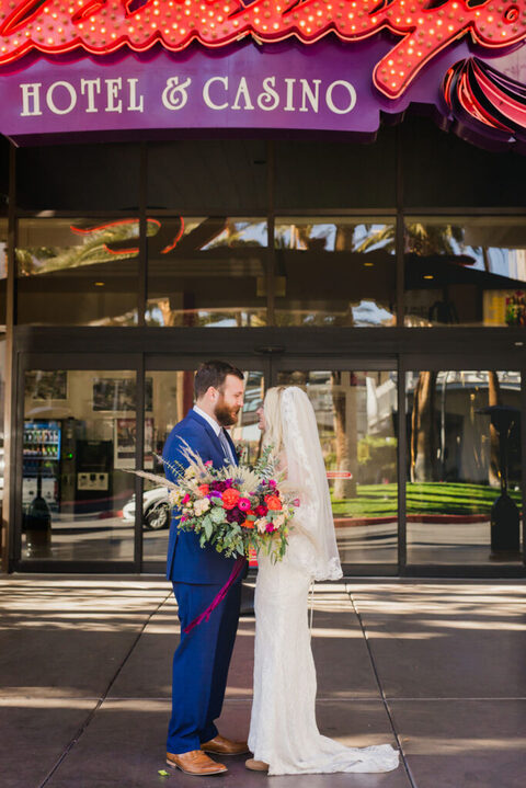 The night before their elopement we went out to Freemont Street aka “Old Vegas”. Our Uber dropped us off outside of the Plaza Hotel. I feel like the entryway to this hotel is in a bunch of movies and is like, Iconic Vegas.