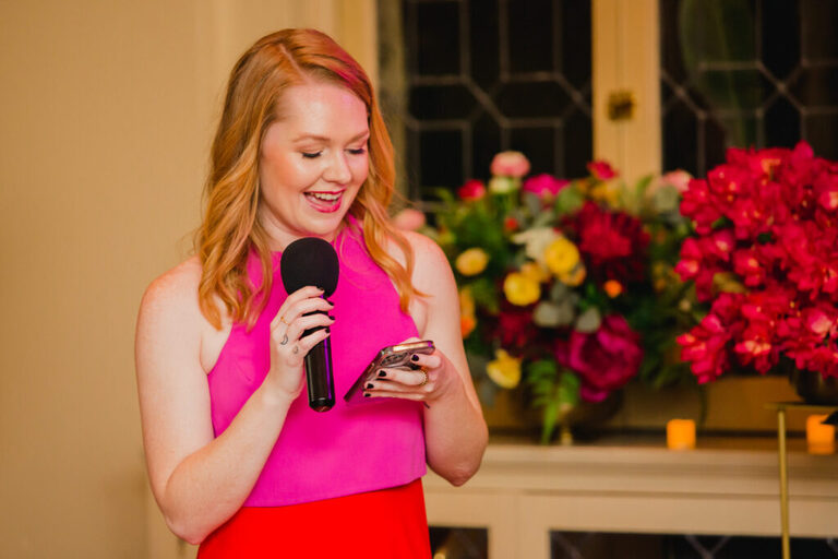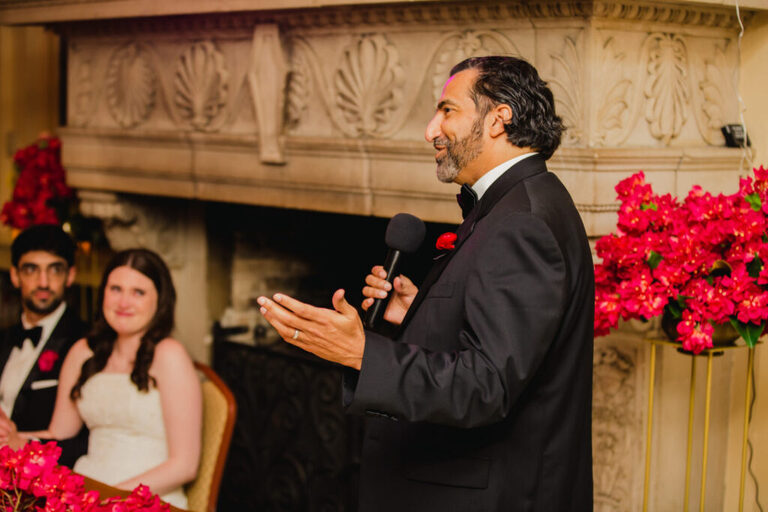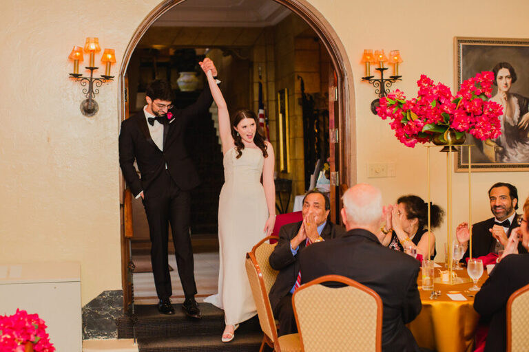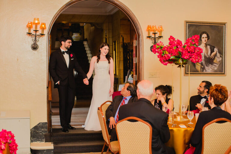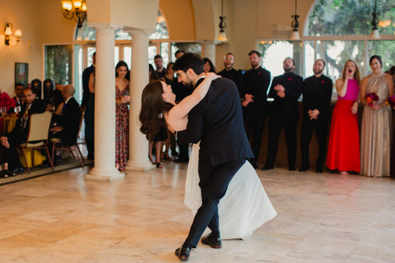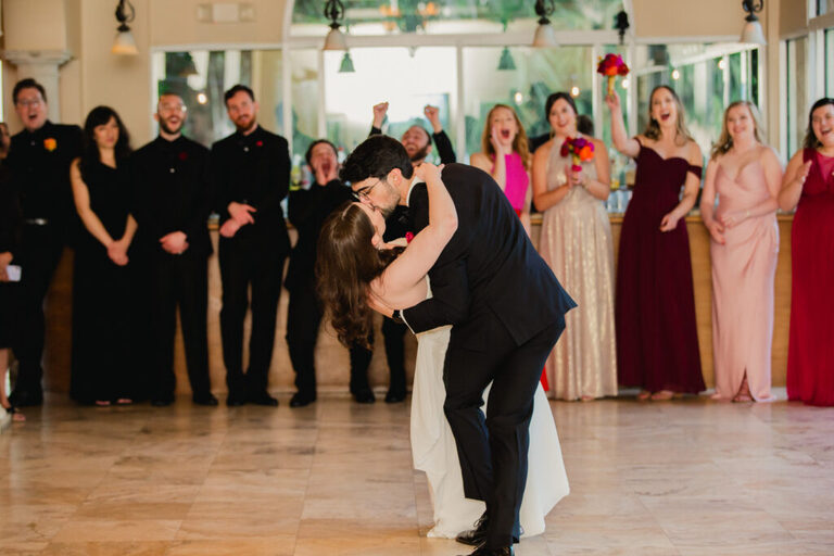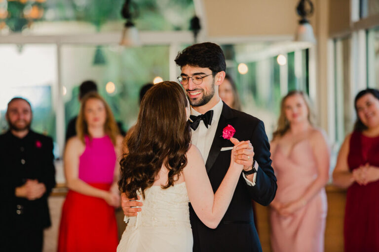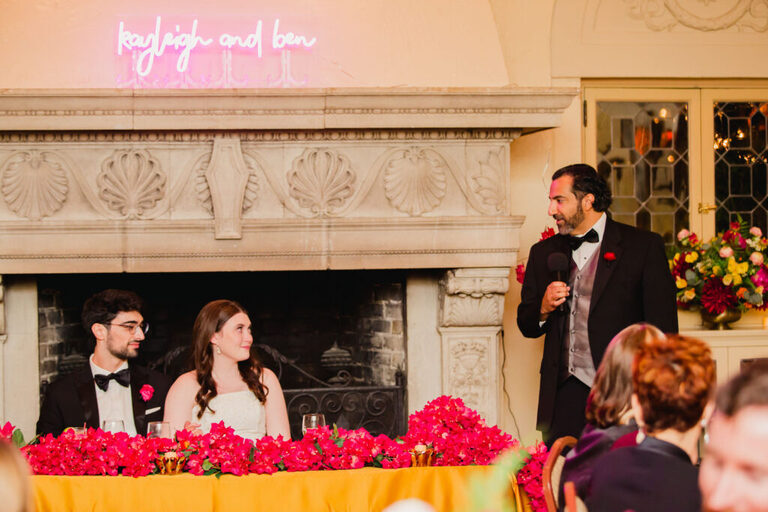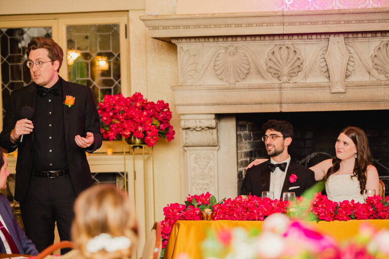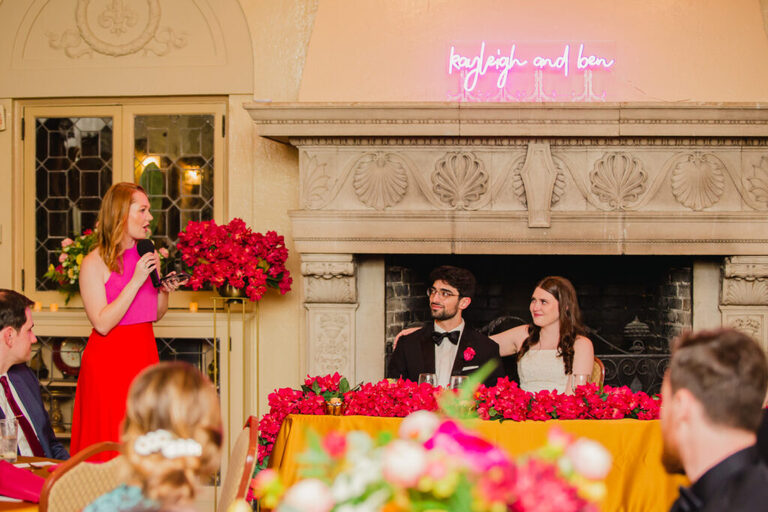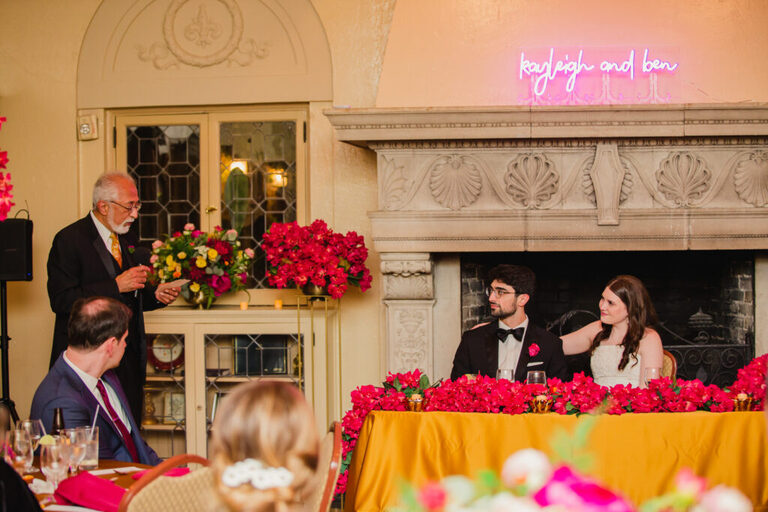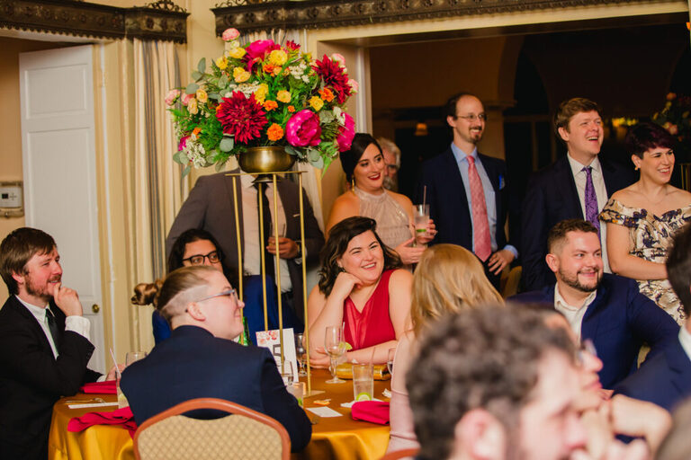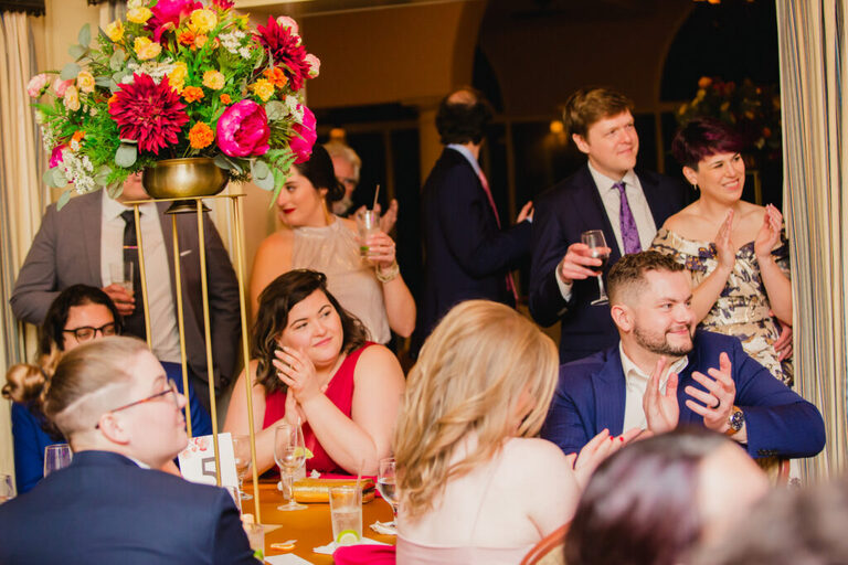 Look at all the beautiful colors in this space! This gorgeous reception space was the perfect place to celebrate the rest of the evening. After the couple’s first dance, we heard some great toasts.