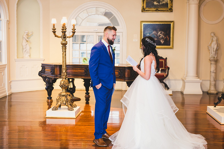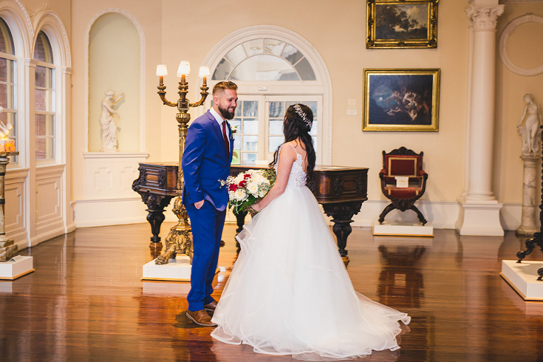 Kyle and Cara decided to do their first look before the ceremony. We headed upstairs to the third floor of the museum. It is an ABSOLUTELY GORGEOUS place to take portraits.