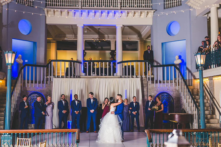 Friends and Guests gathered in the lower level of the museum for the ceremony. Cara looked absolutely amazing as her father walked her down the aisle. You could feel the pure joy in the room. The couple had a sweet ceremony and sealed it with a kiss as the new Mr. & Mrs. Bradburn!