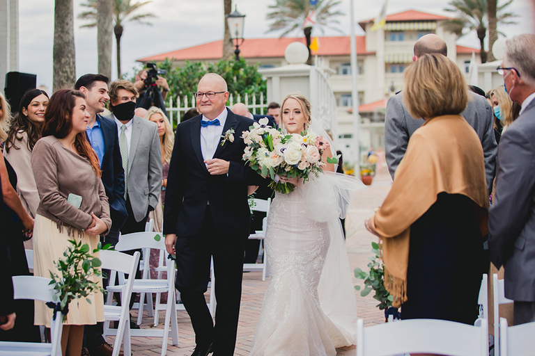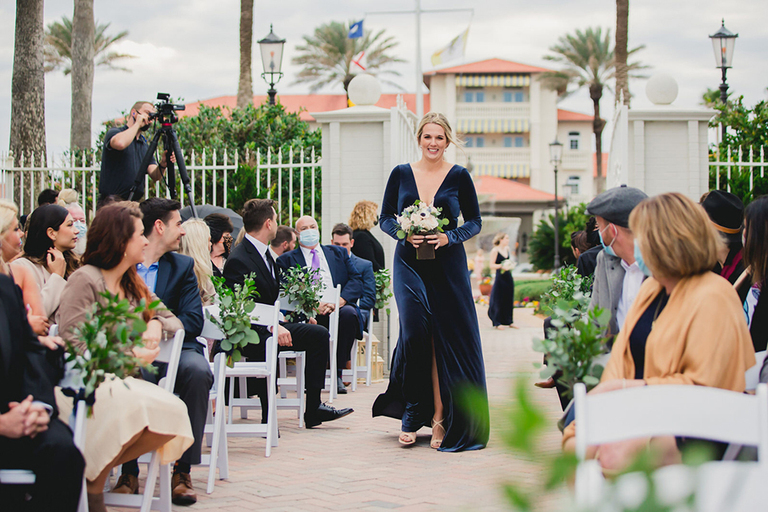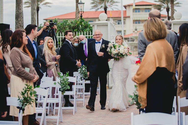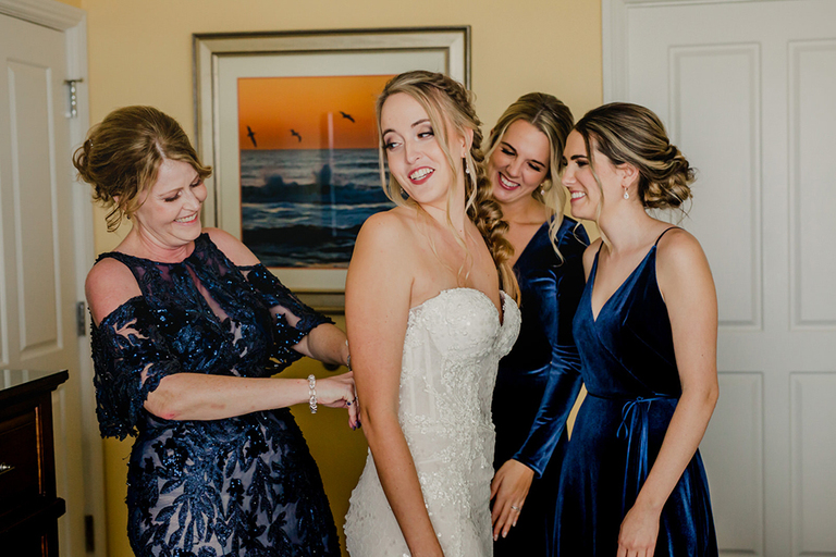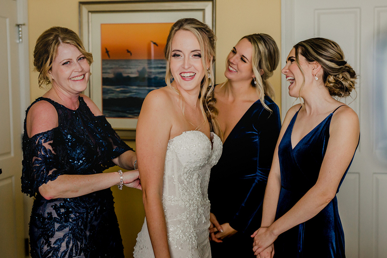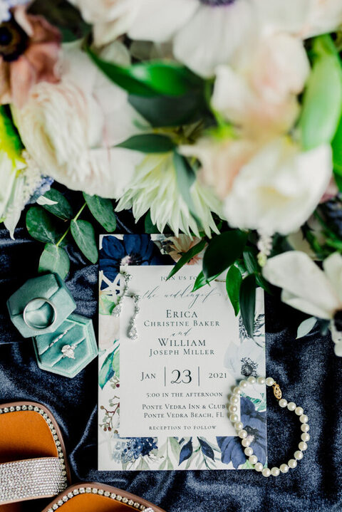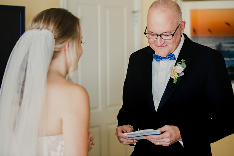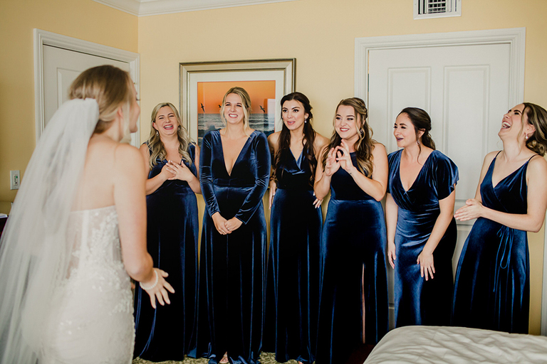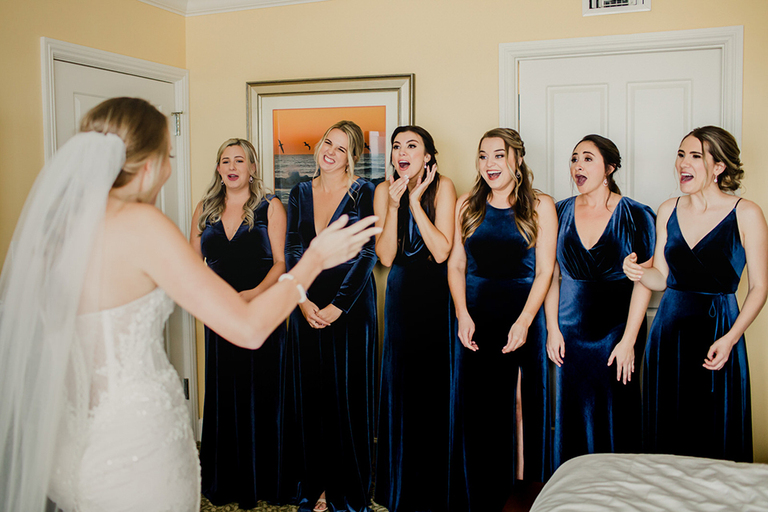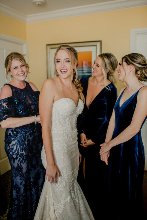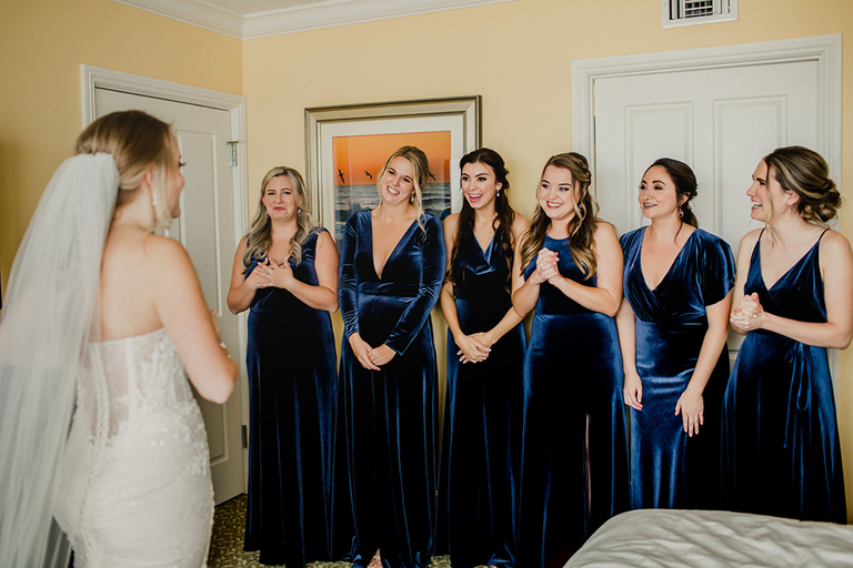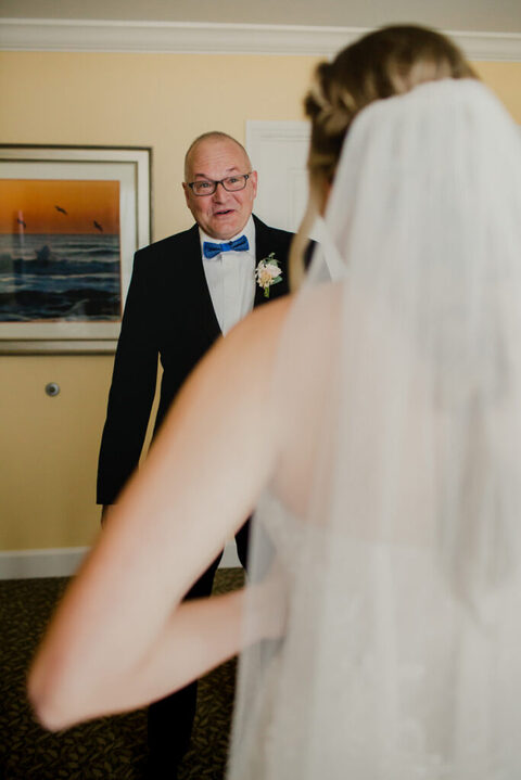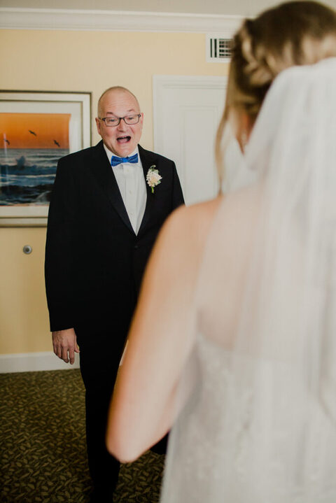 Erica and her bridesmaids got ready in a suite at The Ponte Vedra Inn and Club Wedding Venue in Jacksonville Florida. She did a super sweet first look with her father and a joyful first look with her bridesmaids. Everyone was so excited to celebrate the big day!