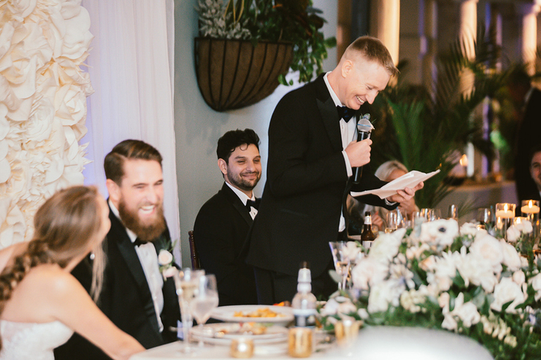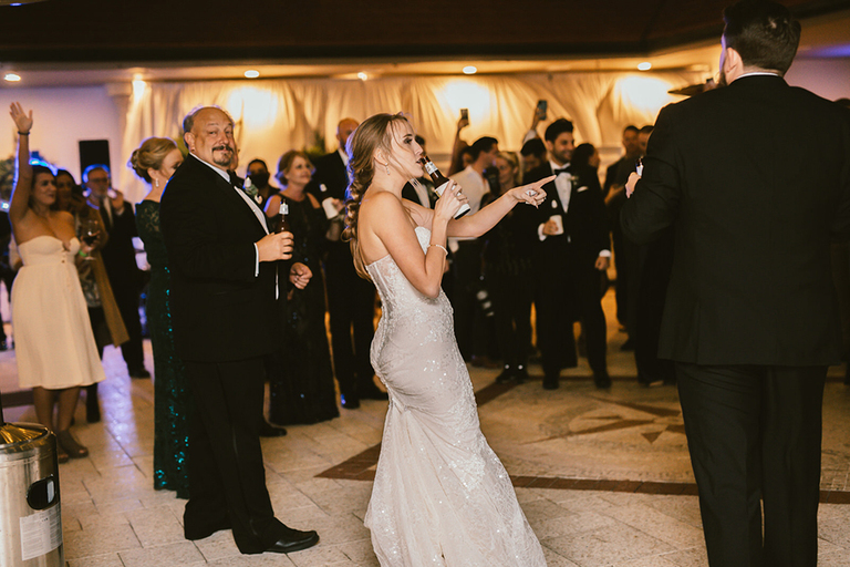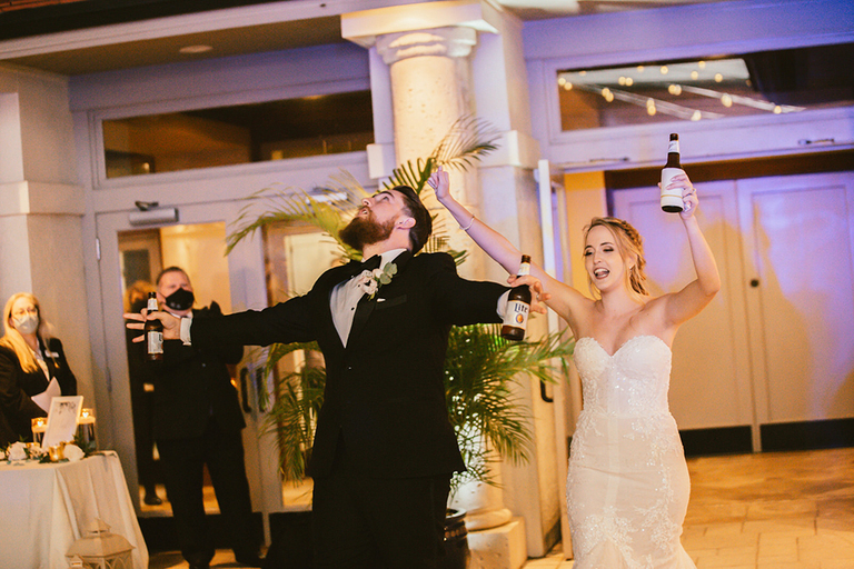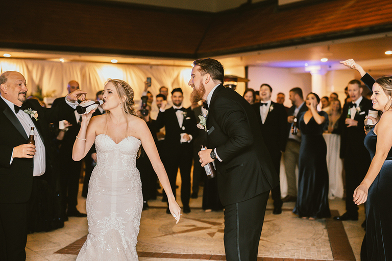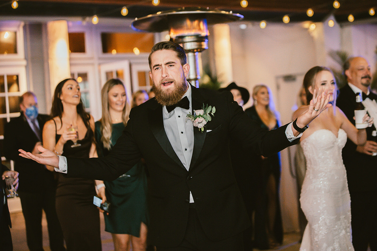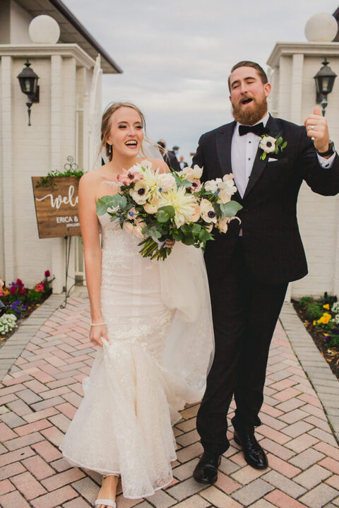 Give me allllll the pretty details! The great thing about this reception space is that it is an open-air venue that allows guests to flow freely between the indoor and outdoor space. Erica and Billy were welcomed to their reception with big cheers from the crowd.