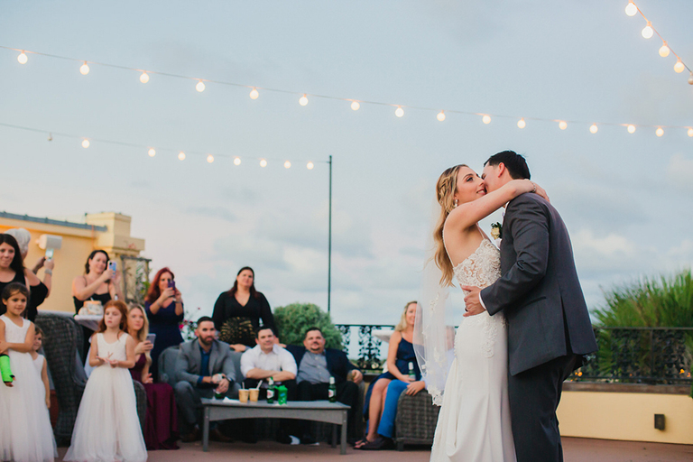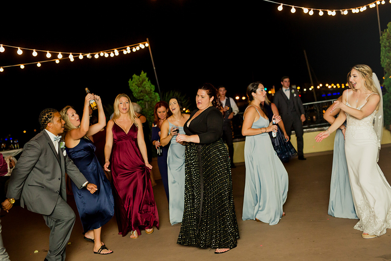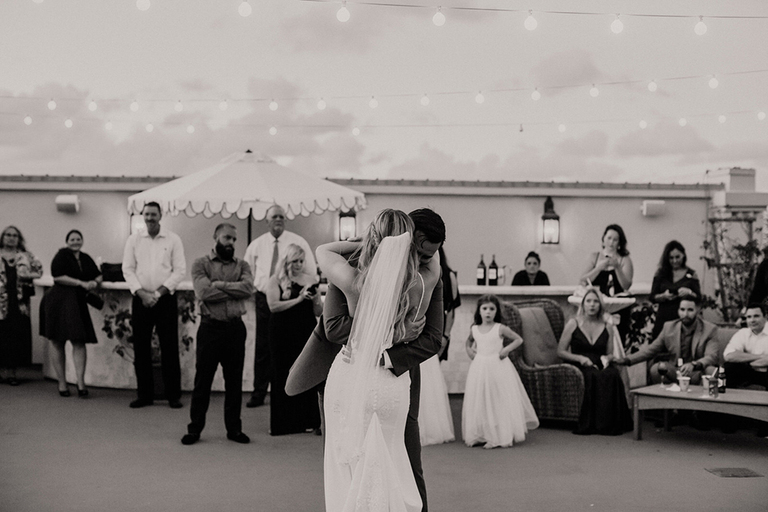 I LOVE these images! Especially the newlyweds doing their first dance as husband and wife! There is definitely something magical about dancing on a rooftop a sunset with sailboats in the bay. What a perfect evening!