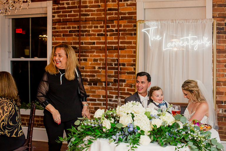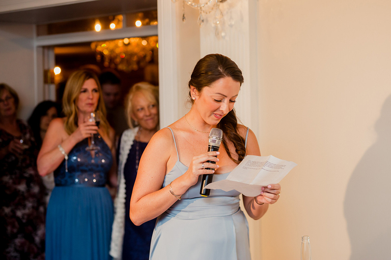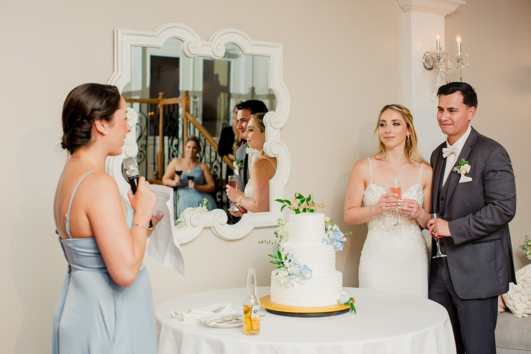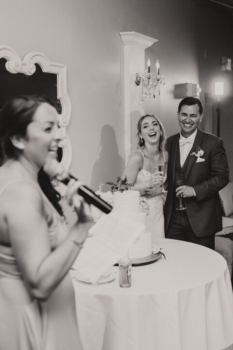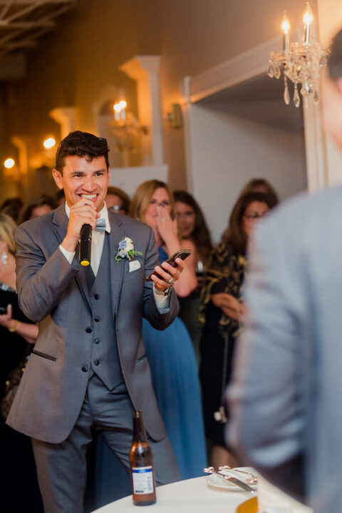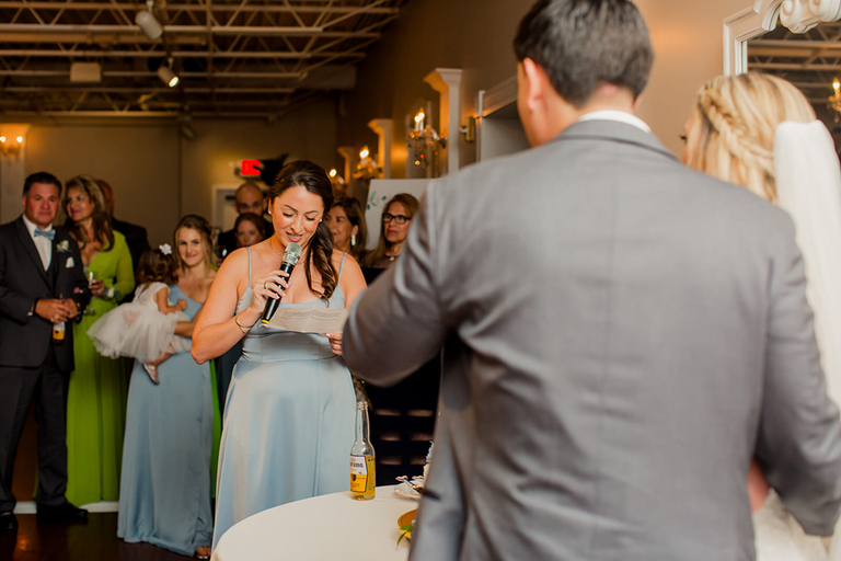 After the dances, we headed inside for the formal dinner and reception. Guests enjoyed some delcious dinner and desserts. We heard some super fun and sweet speeches followed by a toast to the newlyweds.