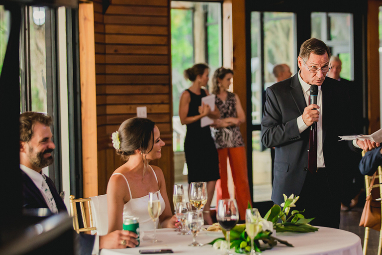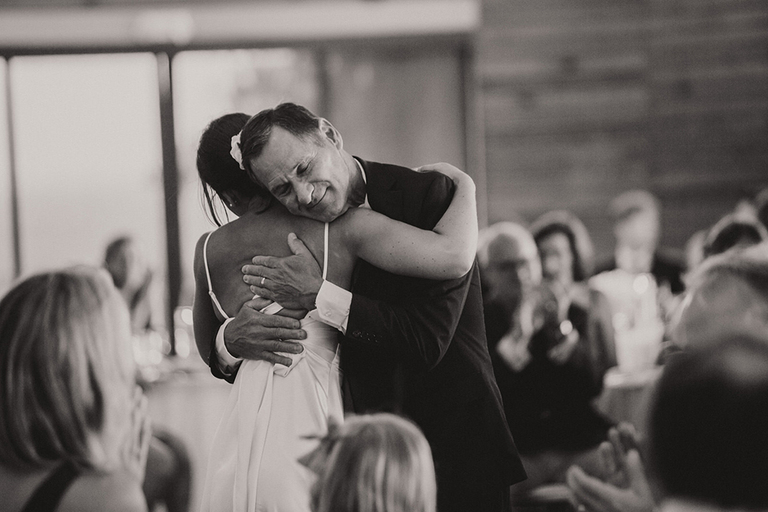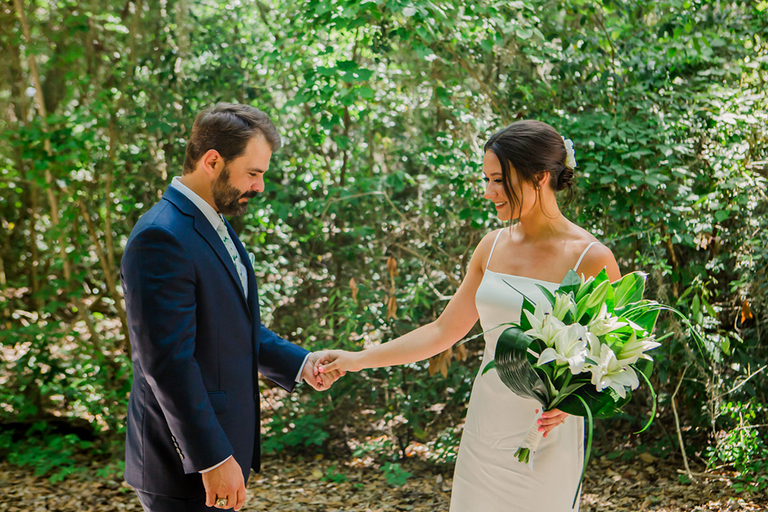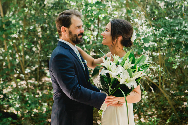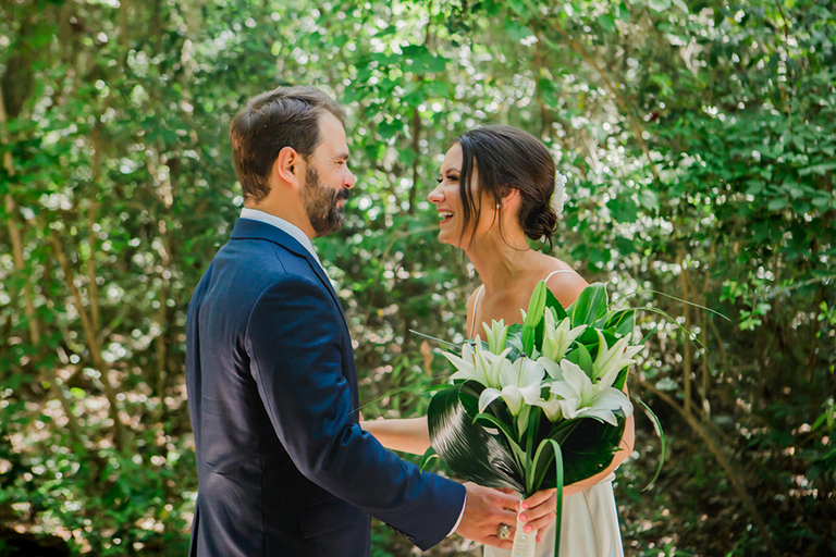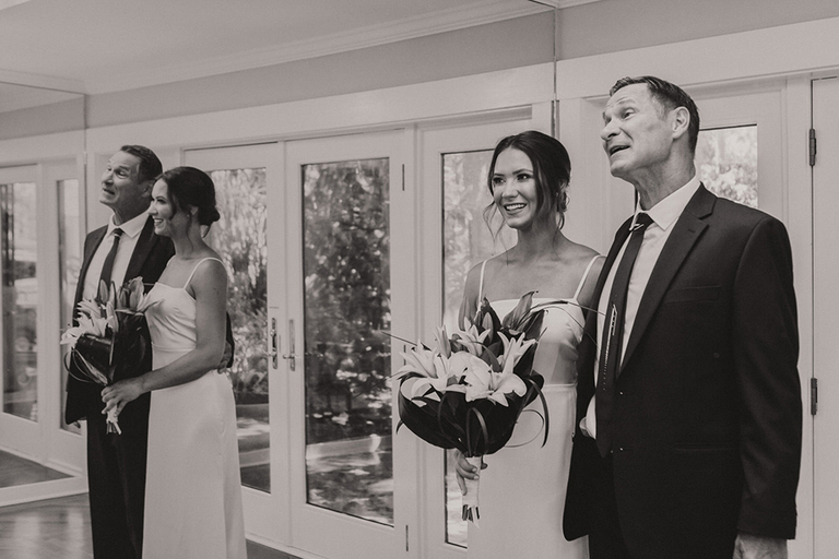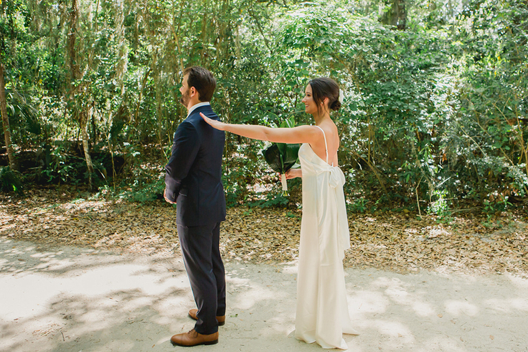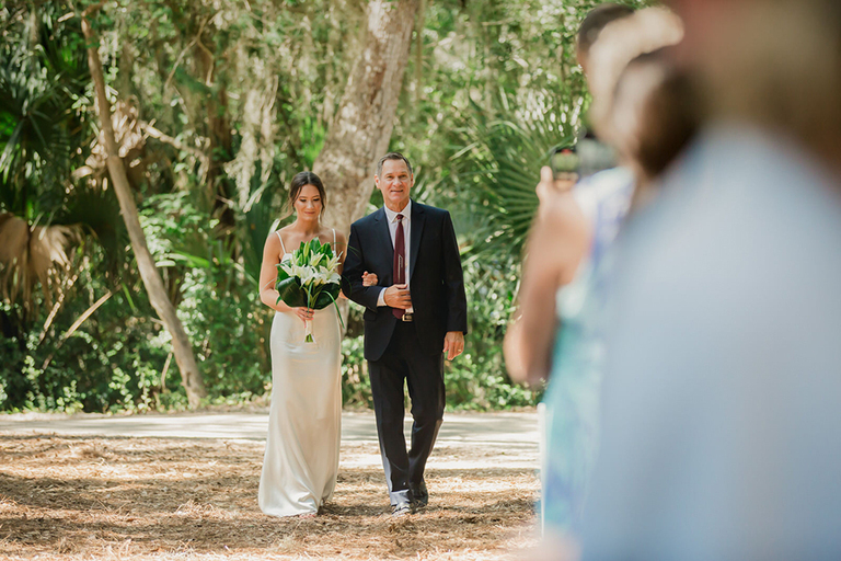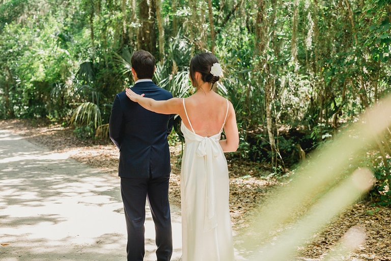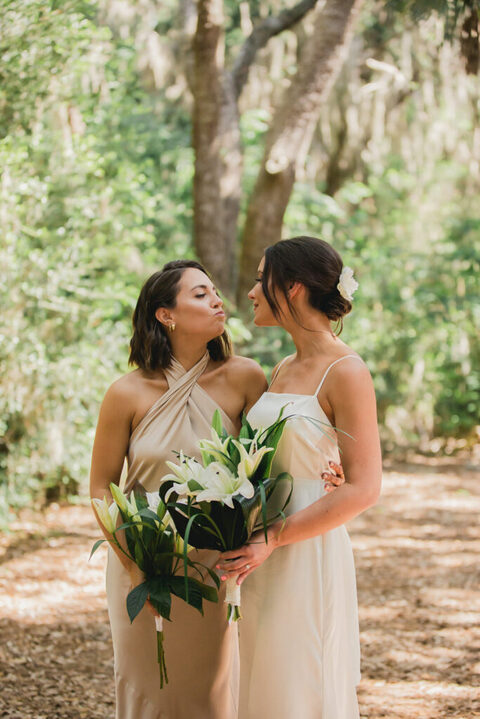 Rebecca and her bridesmaids got ready in a cute bungalow a few blocks from the venue. The Florida greenery made for the perfect backdrop. Becca’s best friends and maid of honor helped her into her wedding gown. After she was ready, we did a really sweet and fun first look with her father.