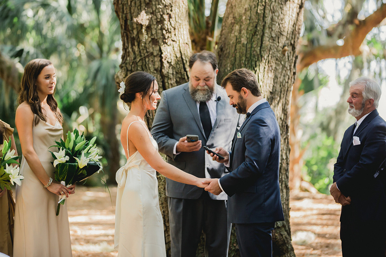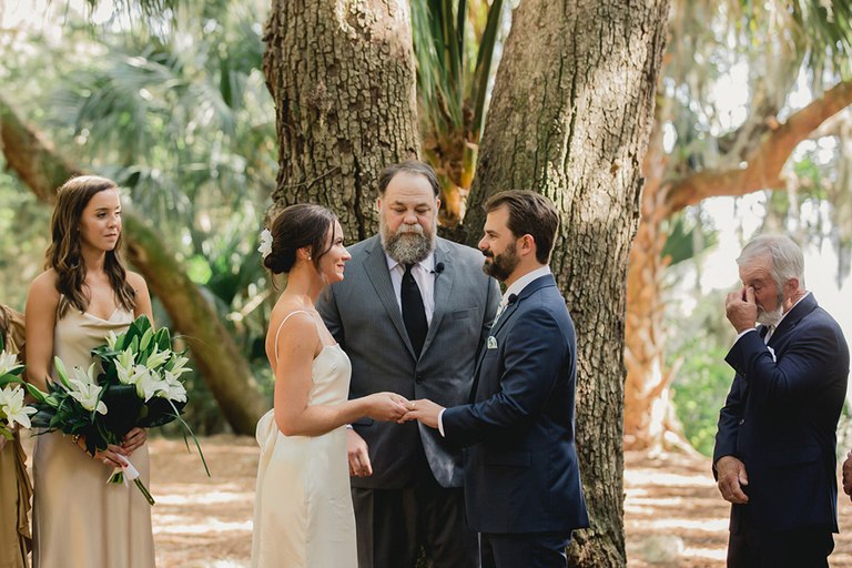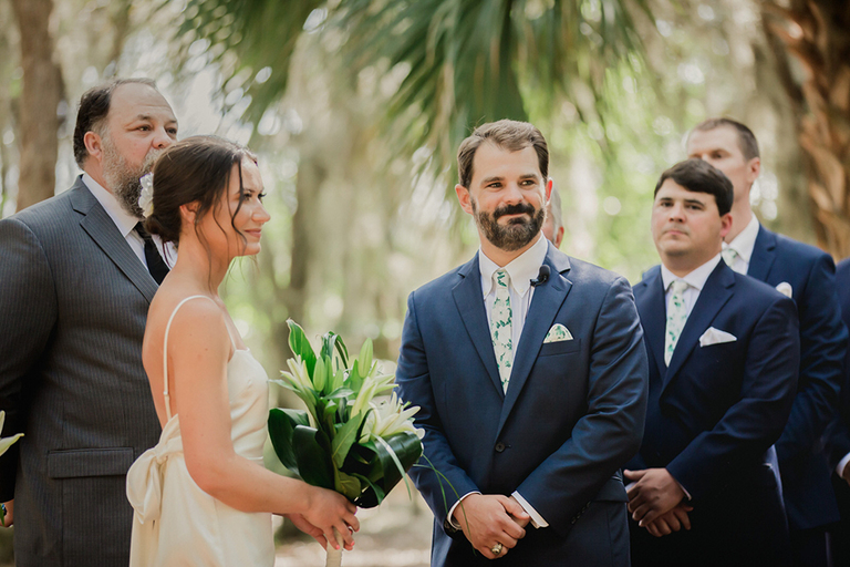 What a gorgeous wedding ceremony! These two were married under a beautiful Live Oak Tree covered in Spanish moss. An absolutely perfect spring day for the newlyweds to tie the knot.