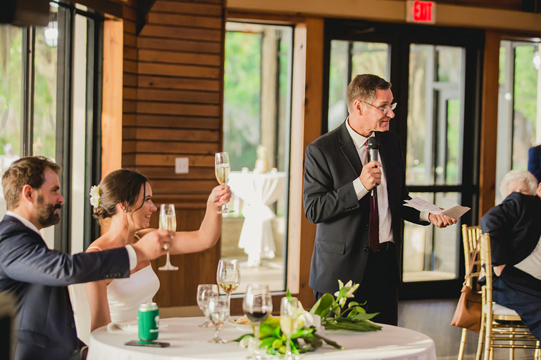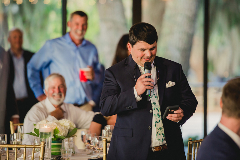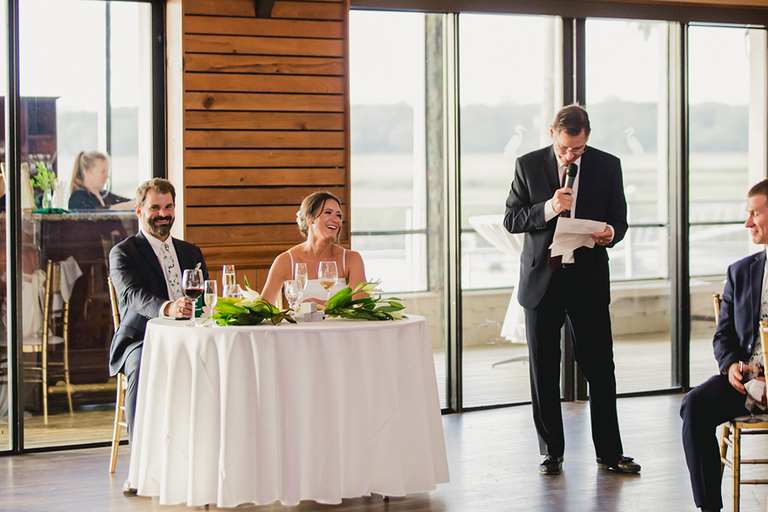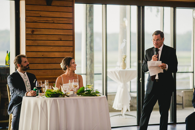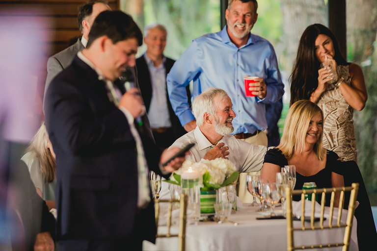 A low country sunset combined with cocktails and lots of friends…how much better can it get?! Guests enjoyed delicious food and drinks on the Florida marsh. After cocktail hour we headed inside and the festivities began.